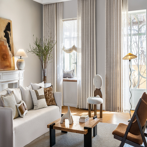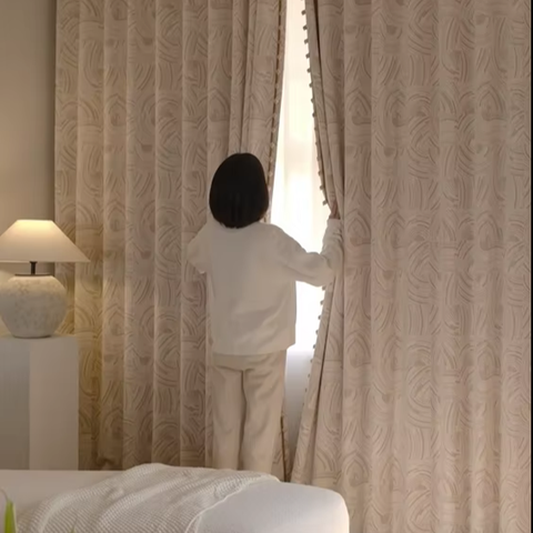 Creme Elegância Personalização Fit Jacquard Fios Tingidos Modern Luxury Motor System Quarto Sala Cortinas