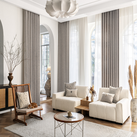 Moderno Design Creme Aveludado Fios Tingidos Cortina Grosso Bege Double Layer Cortinas para Quarto Sala